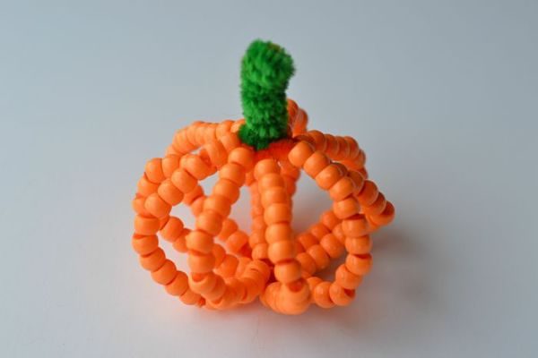 Тема оранжевой тыквы, созревающей осенью, лучшая для творчества. Сделайте ее из бисера и проволоки. Дети могут сделать одну для себя, одну для Вас и одну для бабушки!
