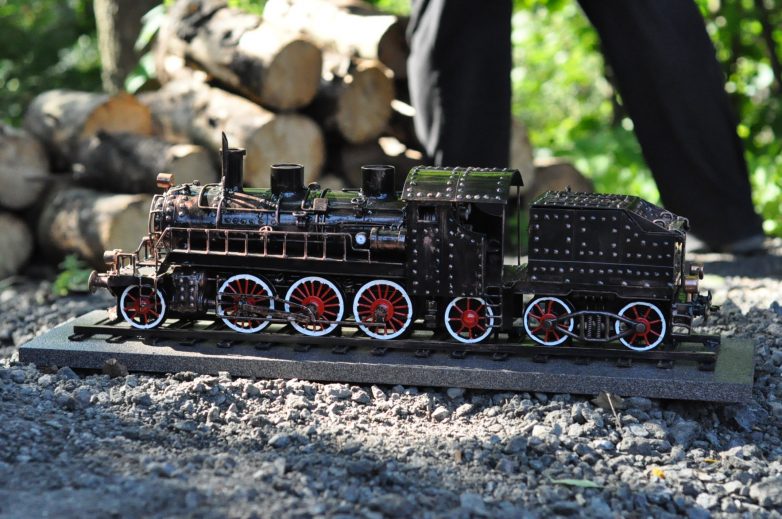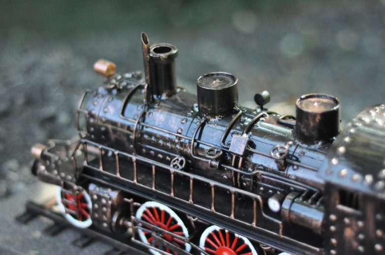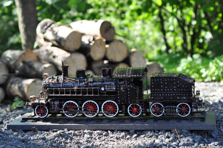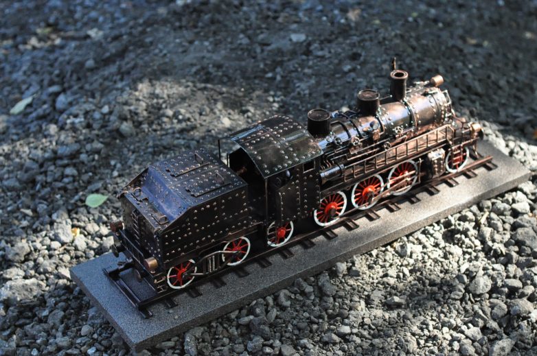 Есть у меня хобби (автор). Делаю разные поделки из металла. Вот один знакомый попросил ко дню рождению начальника сделать что то интересное. Так как начальник является какой то шишкой в РЖД то и пришлось делать паровоз. Длинна по основанию получилась 70 см на 20 см.