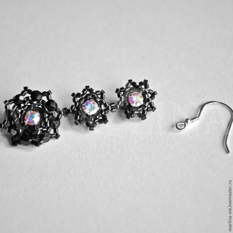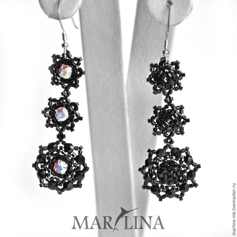 Плетем из бисера и кристаллов Сваровски лёгкие черные серьги-снежинки