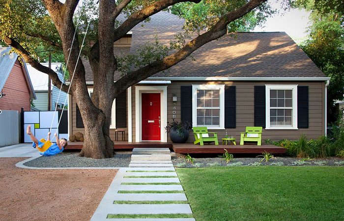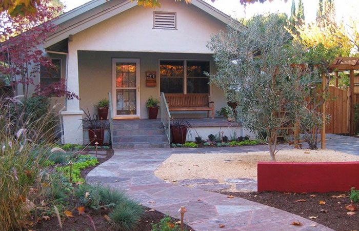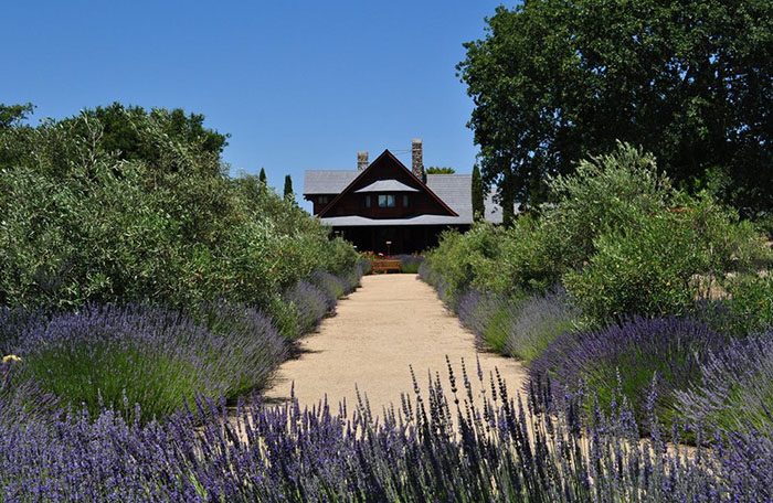 Прямая дорожка очень практична, так как сразу же приведет прямо к дому очень быстрым и безопасным образом. Прямая дорожка – это скучно. Но, что же отличает дорожку, представленную на фотографии? Прежде всего, прямые линии немного смягчают кусты лаванды, высаженные вдоль. Во-вторых, измельченный гранит смотрится органично с ландшафтом. В-третьих, она достаточно широкая, по ней одновременно рядом могут идти несколько людей, а, значит, может состояться интересная беседа.