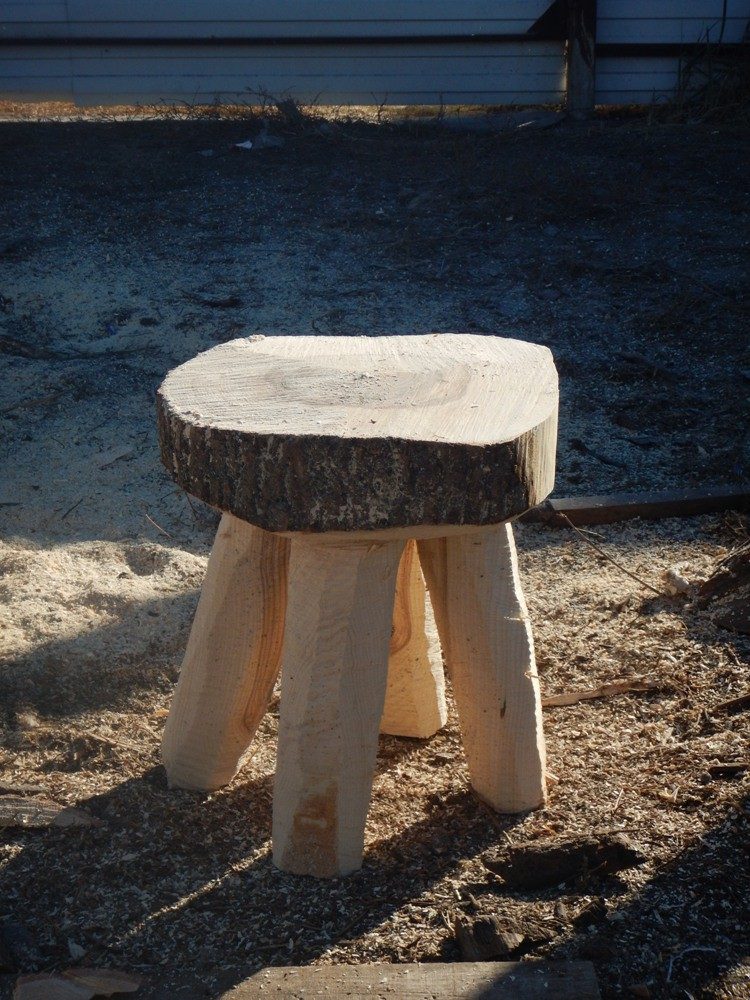 Дальше я немного скруглил ножки и крышку, но это дело вкуса. Убрал кору. По времени на все про все – около 15-20 минут вместе с размышлениями. Скромно допускаю, что у меня есть некоторая фора перед новичками. Но и новичок на этом изделии довольно быстро набьет руку. Единственная задача – набивая руку, не отпилить ногу.