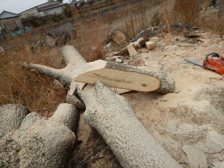 Вот с этого момента – полезная информация. Утверждаю, что делать табуретки бензопилой – просто, быстро, дешево и по силам каждому, кто в состоянии удержать бензопилу в руках. Вот обрезок сантиметров 40-50 высотой. Нужно постараться, чтобы верхний и нижний спилы были параллельны друг другу и перпендикулярны оси бревна. Иначе табуретка будет кривая. (На фотке как раз кривые срезы, я их выровнял потом)