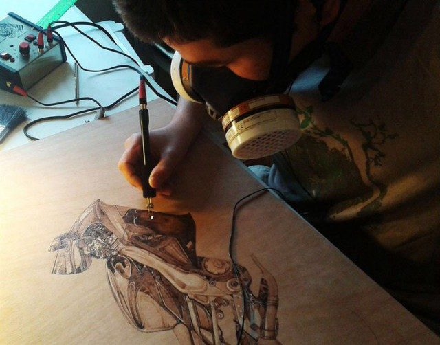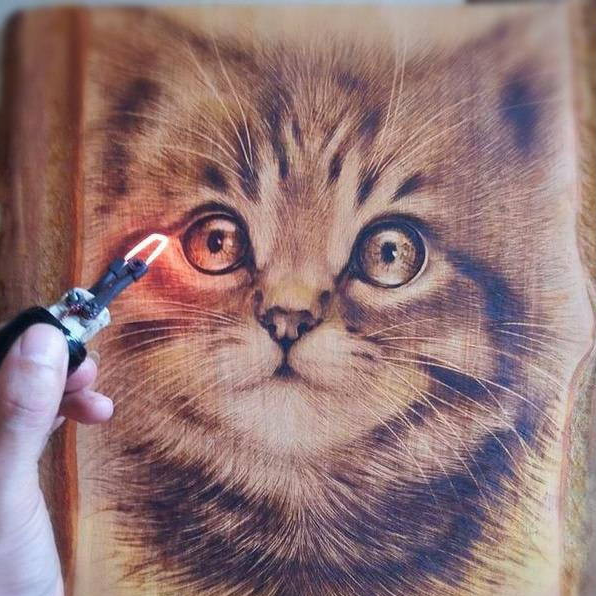 Прямо на выжигание не похоже! Как будто постер на дерево наложили. Здорово!