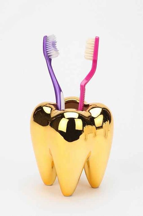 Многие привыкли хранить щётки в стаканах. От этого варианта не стоит отказываться, правда, его можно разнообразить. Например, поставить стакан или чашку с забавным рисунком, или использовать вместо привычной подставки сантехнические фитинги, оставшиеся после смены труб.