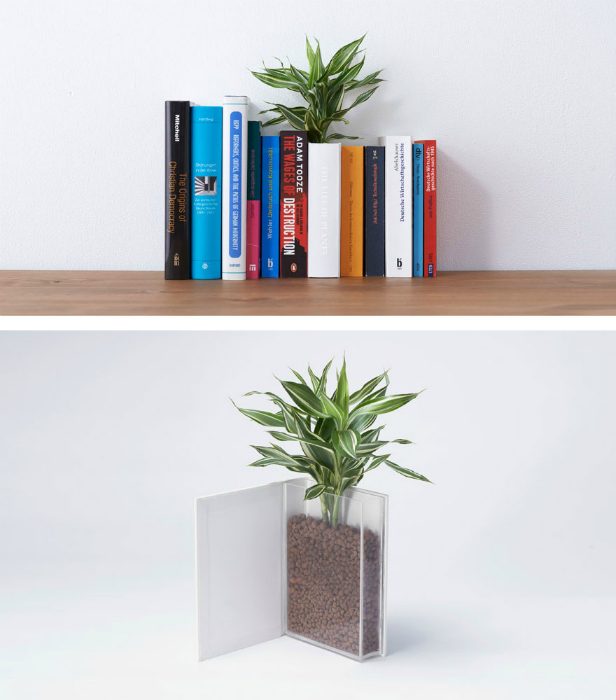 Фантастический цветочный горшок, стилизованный под книгу.