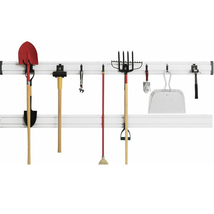 Специальное крепление для безопасного хранения массивных садовых инструментов.