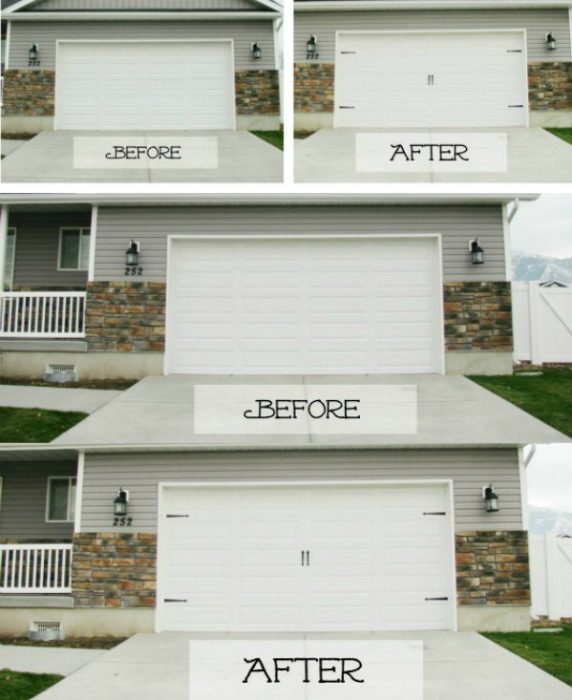 Достаточно добавить несколько декоративных элементов, чтобы старая дверь гаража приобрела абсолютно новый вид.