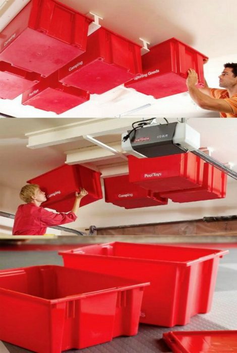 Система хранения под потолком — гениальное решения для небольшого гаража.