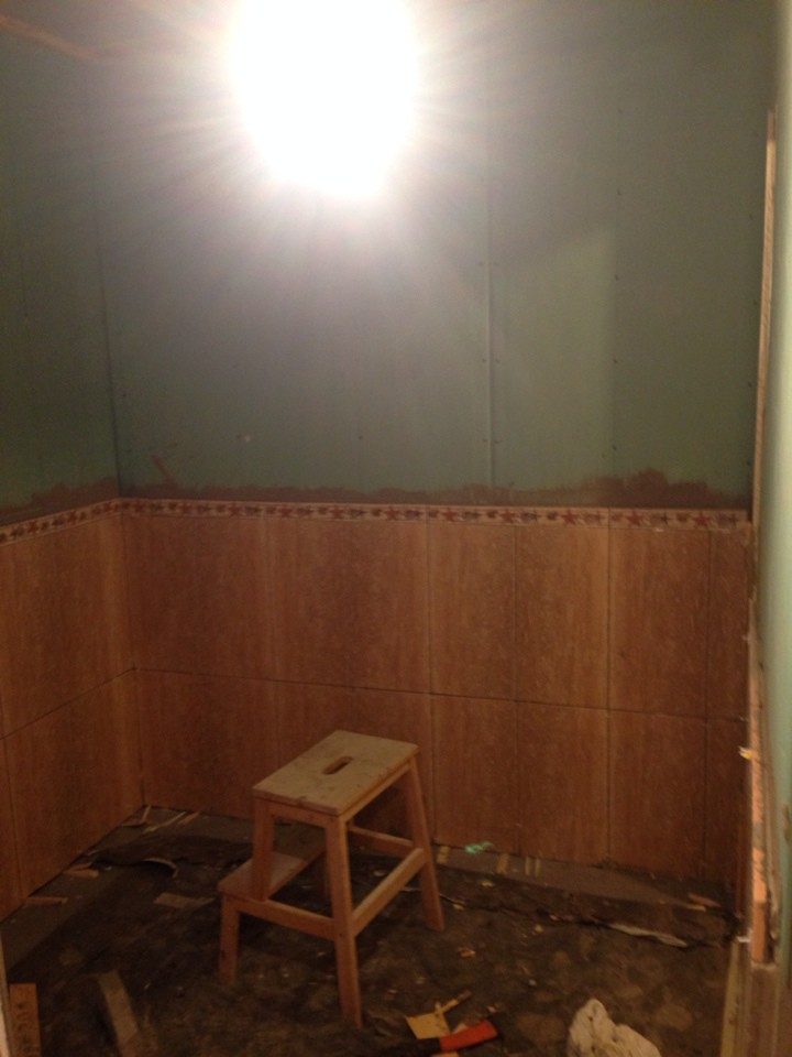 клеим плитку в помывочной комнате