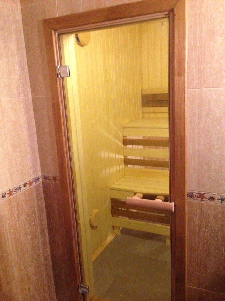 Поставили дверь в сауну.