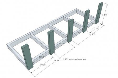 — задние/фронтальные доски: 2 – 2 (5,08 сантиметров) x 4 (10,16 см) @ 72” (182, 88 см);