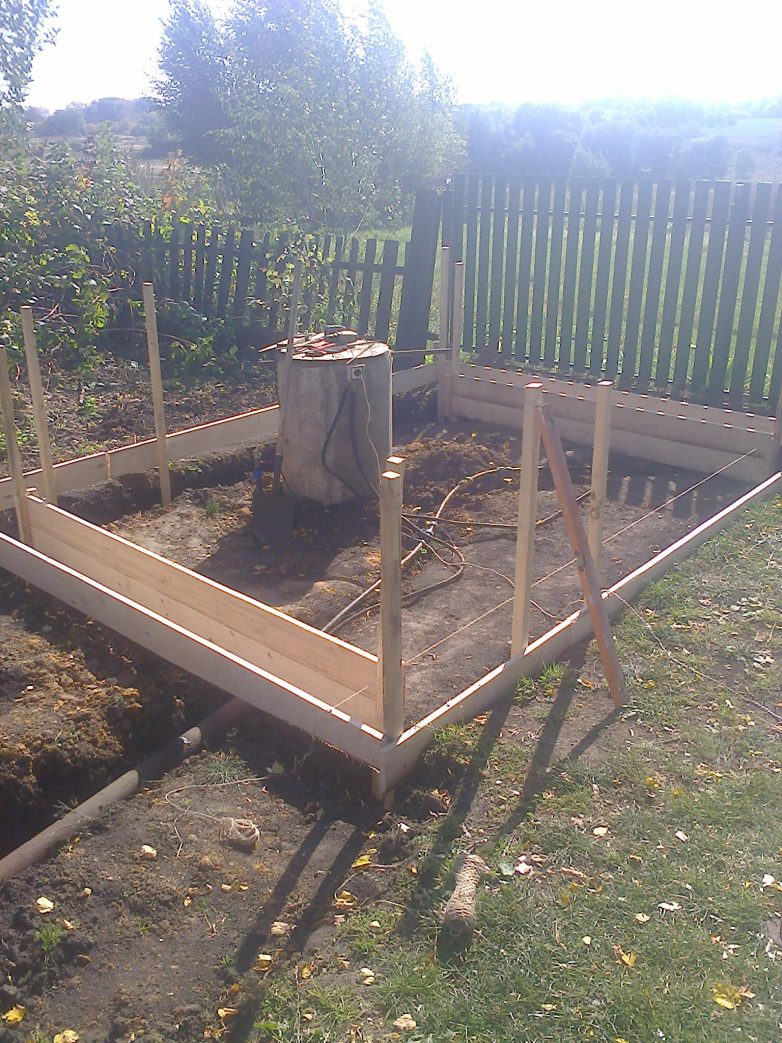 опалубка залита и фундамент под печь тоже. Ложим гидроизоляцию, покурили и погнали ложить печь.
