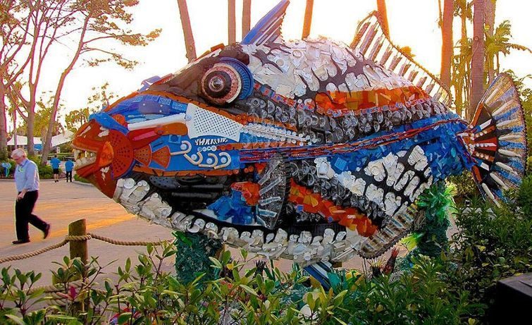 Эти красивые массивные скульптуры являются тревожным напоминанием о чрезмерном использовании обществом пластика и повсеместном его разбрасывании. Эти 13 гигантских скульптур были целиком сделаны из пластикового мусора, найденного в море и в прибрежной зоне.