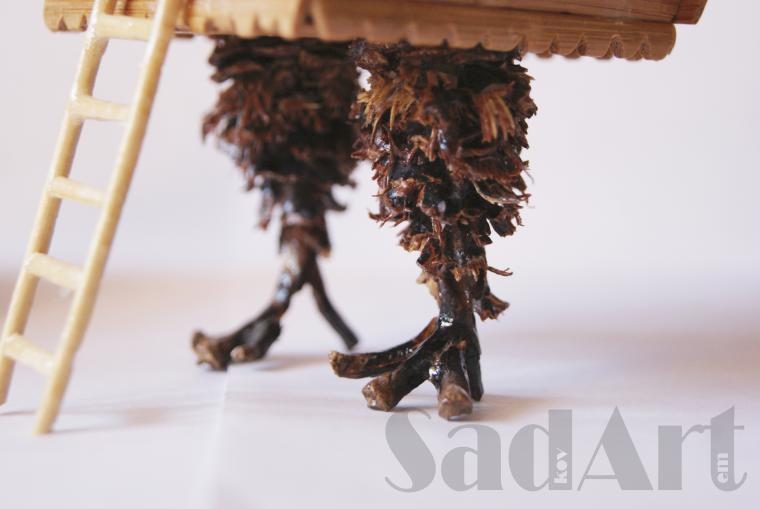 Нижнюю часть избушки, где должны быть курьи ножки, пока оставлем нетронутой.