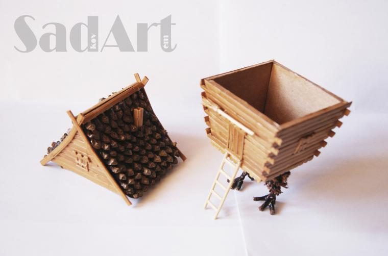 — лесенка (для лучшей устройчивости избушки, она послужит «третьей ногой»);
