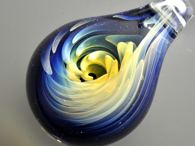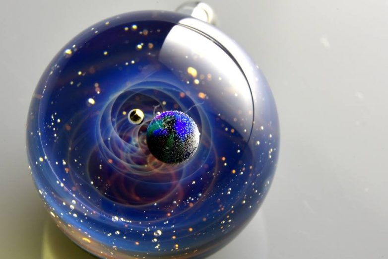 В его ловких руках обыкновенные кусочки стеклянных заготовок превращаются в удивительные сферы, заключающие в себе целые галактики и планеты Солнечной системы!