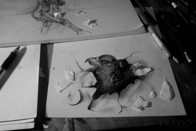 Просто удивительно, как некоторым людям удается с помощью простейших средств создавать потрясающие иллюзии, способные обмануть человеческий мозг. Алессандро Дидди является одним из тех редких талантливых художников, которые умеют вдыхать жизнь в нарисованные изображения. Причем делают это настолько мастерски, что порой кажется, будто персонажи готовы выпрыгнуть с листа прямо на зрителя.
