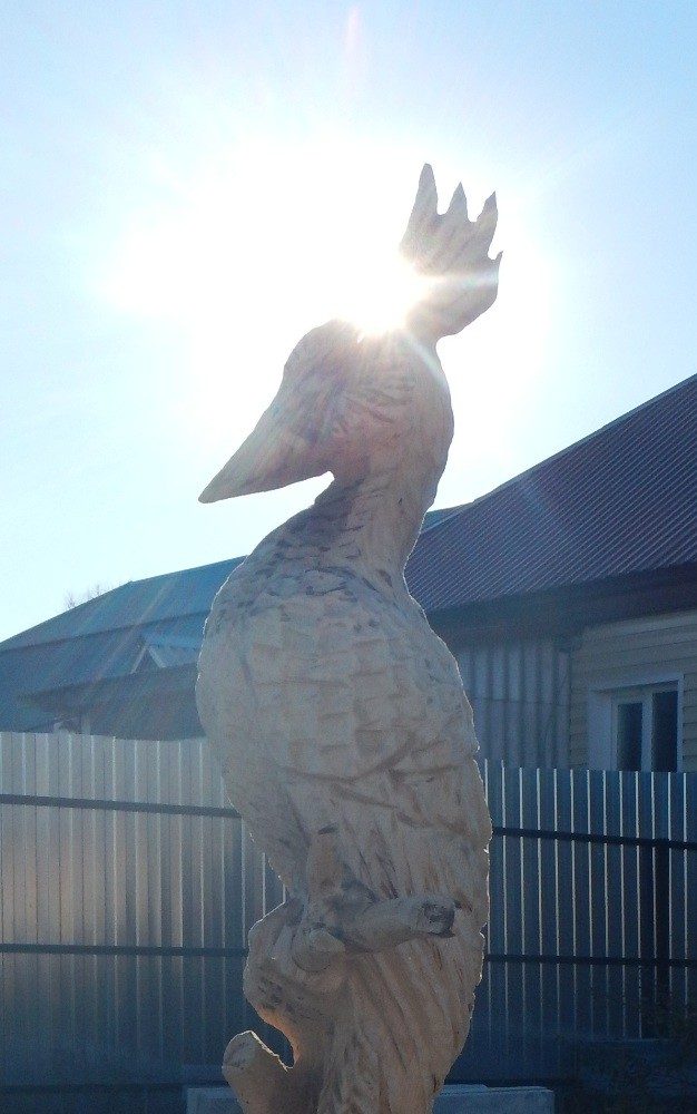 Штука довольно простая – начал часа в 4 вечера, через полтора часа стемнело. Но сделал бОльшую часть работы. Если интересно – пара слов о «птице» на заднем плане. Памятник «Тщетности тщеславия». Сделал дракона, которого не могу протащить ни в одни двери, ни в одни ворота. Высота – 2 метра, размах крыльев – 120. Вот уже второй год строит… ибо нефиг выпендриваться. Но, вернемся к Жар-птице.