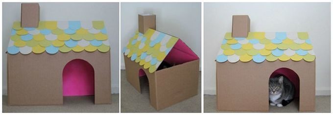 Коты обожают коробки. Почему бы не сделать вашему пушистому любимцу такой домик?