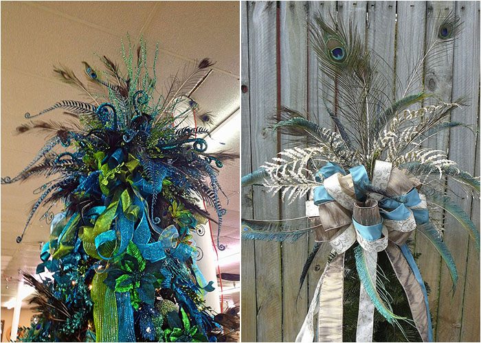 Для любителей экзотики и сине-зелёной цветовой гаммы лучшим выбором станут красивые павлиньи перья. Не нужно им который год пылиться где-то в вазе.