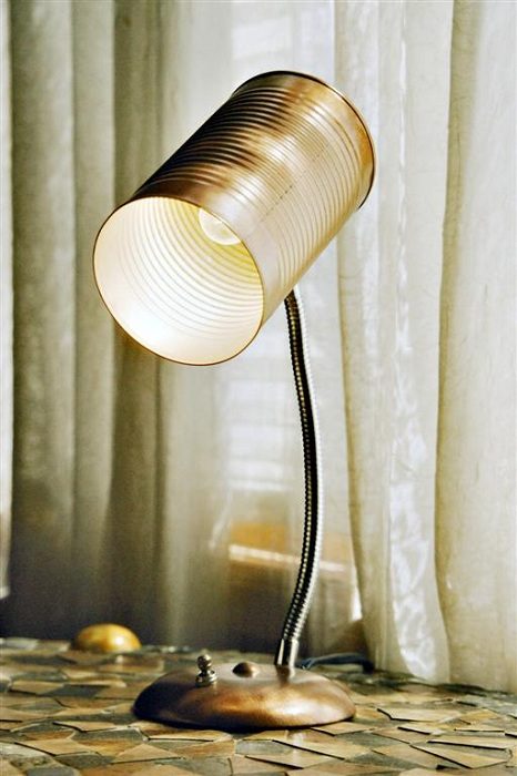 Креативное и необыкновенное решение создать настольную лампу из жестяной банки.