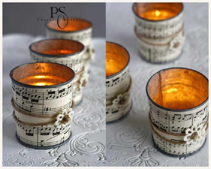 1. Прекрасные подсвечники из жестяных банок