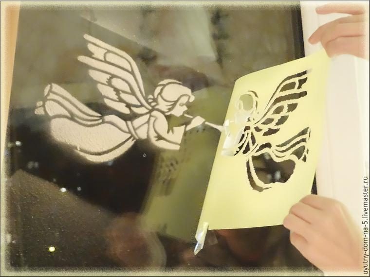 Итак, трафареты готовы. Теперь закрепляем их на стекле с помощью скотча.