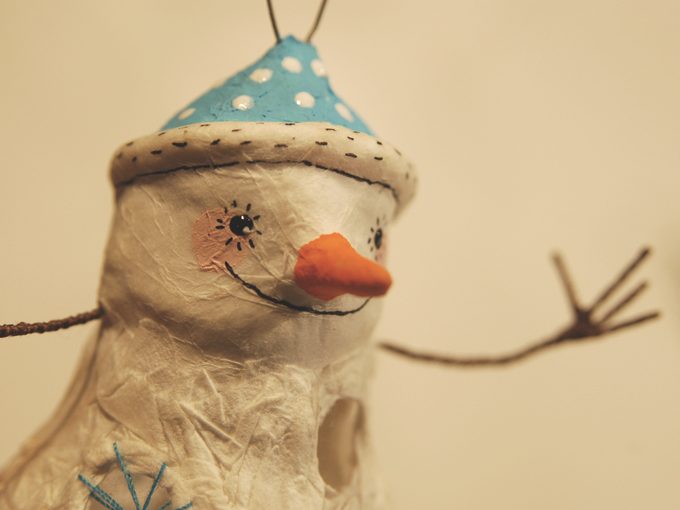 2. Промазывать бумагу клеем и уж затем обматывать снеговика ею.
