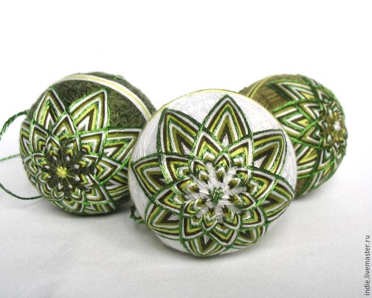 Предлагаю вашему вниманию мастер-класс по изготовлению необычных ёлочных украшений — нарядных шариков-темари.