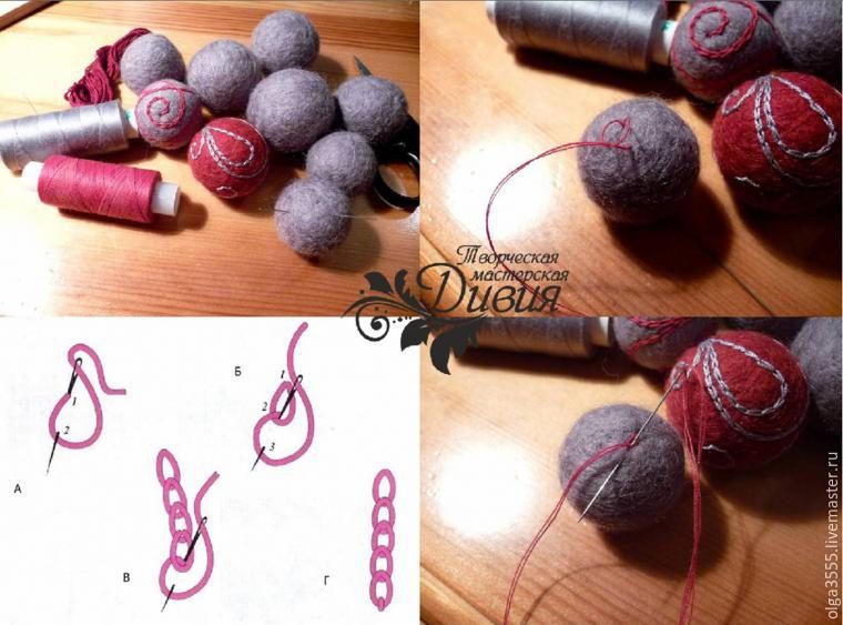 Стоит отметить, что если бусина излишне распушена после мокрого валяния, ее можно довалять иглой, что я и сделала заранее.