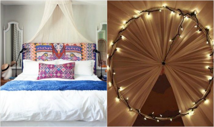 Балдахин с круглым основанием можно сделать, используя детский хула-хуп.