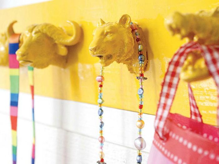 Из ненужных пластиковых фигурок зверей можно сделать оригинальную вешалку для прихожей.