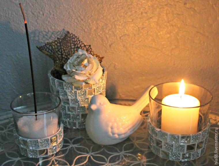 Декорируем стеклянные подсвечники мозаикой