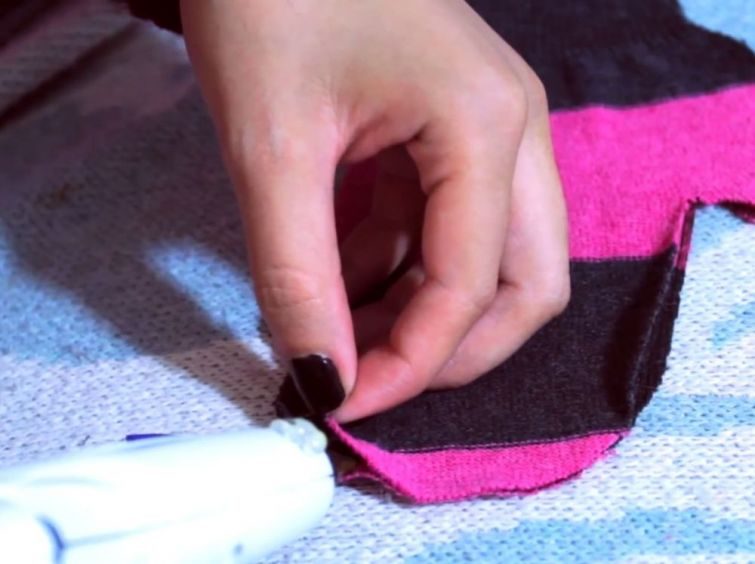 Выберите ненужный вам свитер и очертите свою руку как показано на фото