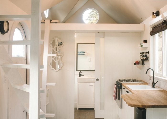 Площадь жилища на колесах составляет всего лишь 26 квадратных метров. Но хозяевам удалось спланировать все так, что внутри домика создается впечатление уюта и простора. Сводчатые потолки визуально увеличивают пространство.