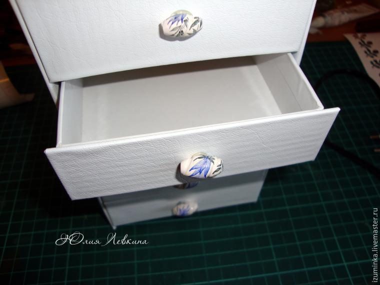 Ну вот, на этом все! Комод делается очень быстро и легко! А главное, очень функциональная вещь! После этого я сделала себе еще один, оба стоят на полочке стеллажа и хранят всякие пуговки/подвески от моей дочери :) Ну и аккуратно же :)
