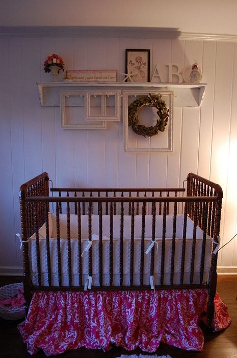 Детская украшена симпатичными рамками и полкой в светлых тонах, практично и симпатично одновременно.