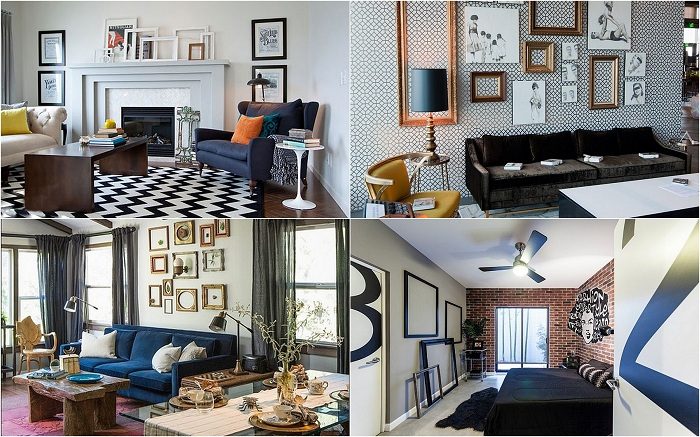 Интересные варианты оформления стен рамками не только преображают и украшают интерьер, но и создают особенную атмосферу.