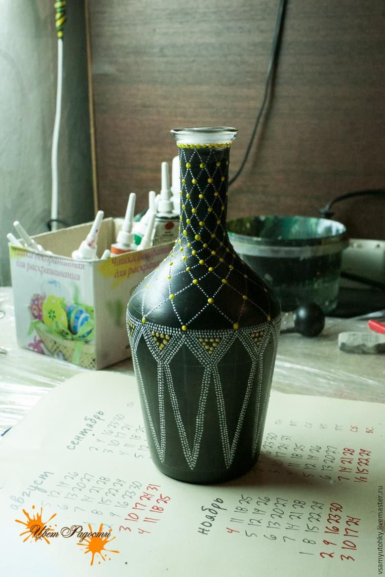 Преображение графина с помощью точечной росписи