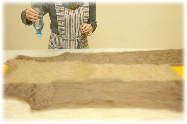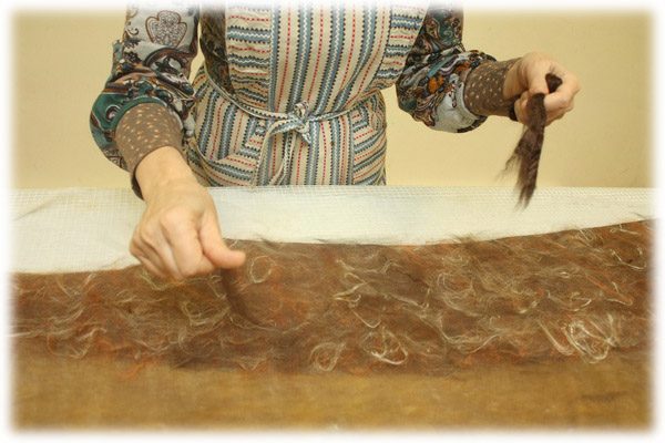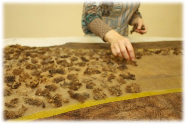 Прикрываем флис тонким слоем шелковых волокон tussar.