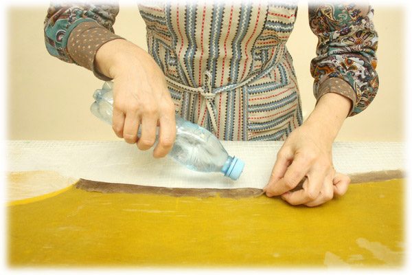 Смачиваем, притираем; формируя ровный край по всей длине.