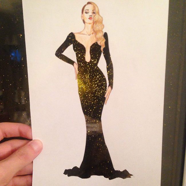 Им могут быть отражение в окне, осенняя листва, клумба с розами, небо или даже здание. Для создания неповторимого образа в ход также идут различные материалы: например спички, цедра апельсина, гранатовые зёрна. Это уже не платья, а настоящие произведения искусства…