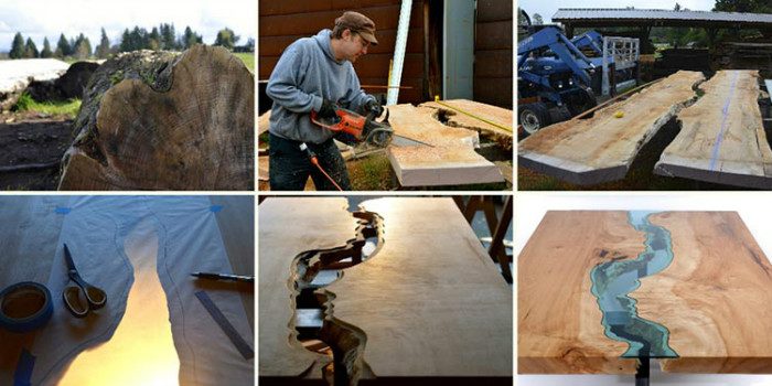 Его работы уникальны тем, что они единственные в своём роде и напоминают обрывистые берега рек и озёр. Такой эффект получается благодаря тому, что в центр каждого изделия дизайнер интегрирует стеклянную вставку. Большие обеденные столы он украшает кусками стекла, имитирующими извилистые реки, а кофейные и журнальные столики вообще выступают миниатюрными прототипами глубоких прозрачных озёр.