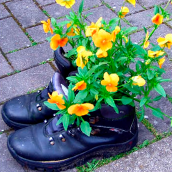 Старые кроссовки-НЕЧТО, конечно. :)) Хотя у меня был вазон из старой калоши. Она так прикольно обросла мхом, что выбросить такую прЭлесть рука не поднялась.