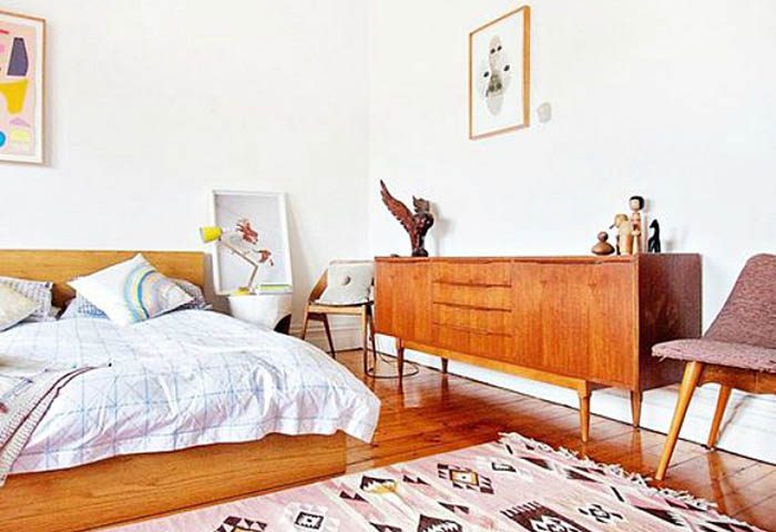 В спальне стоит на стене прикрепить рейку, на которой можно поставить картины или фотографии. Со временем их легко можно менять, обновляя экспозицию под настроение.