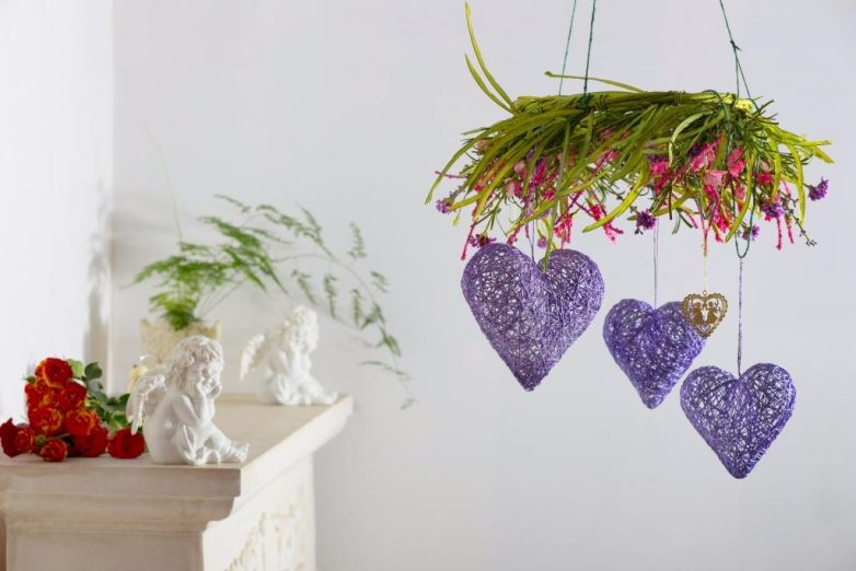 Актуальный любые композиции с зеленью: их можно поставить на стол или повесить на люстру, а милые детали в виде сердечек, пасхальных кроликов и бусин наверняка дополнят ансамбль.