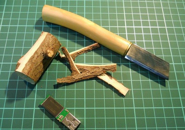 Дано: кусок ветки можжевельника, нож, флэшка – колпачок потерялся, корпус страшненький.