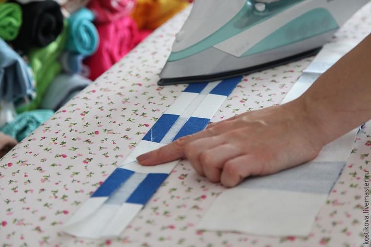 А потом складываем пополам и еще раз проглаживаем. Получая две аккуратные бейки, правда не косые, но нам здесь это и не принципиально.