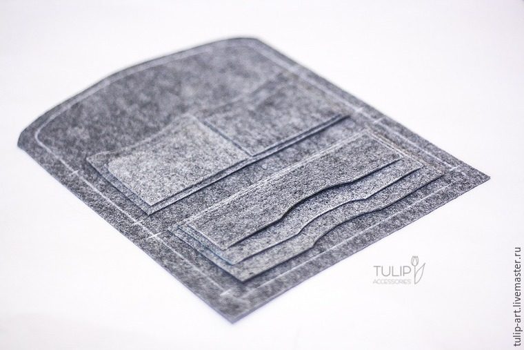 Все детали из фетра можно кроить без дополнительных, помимо обозначенных, припусков на швы, кроме основных — внутренней и наружных стенок, на них я рекомендую оставить припуск около 1 см для финальной ровной обрезки.