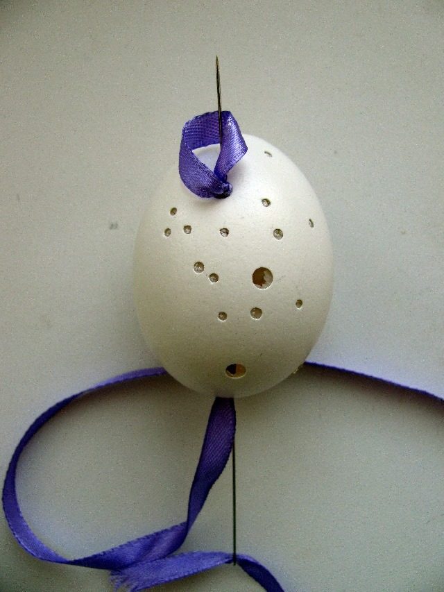 Первое яйцо рассверлил мне муж, который уже занимался резьбой около года. И я ему очень благодарна. Но дальше было понятно, что сверлить нужно учиться самой-очень трудно объяснить, почему именно это отверстие должно быть именно на этом расстоянии и именно такого диаметра. А вышивке- по книге Энн Кокс и другим, которые удалось найти. Три месяца работа на мусорную корзину. И ритуальные пляски над первым уцелевшим страшненьким яичком.